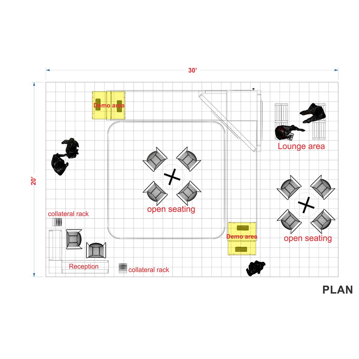 • Rental of all furniture and AV equipment as shown in the visual.